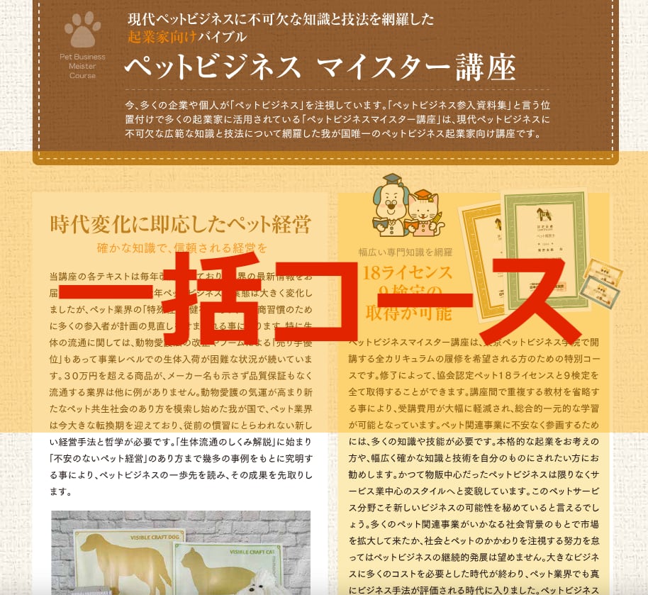 ・「TPS ペットビジネスマイスター講座」一括決済。